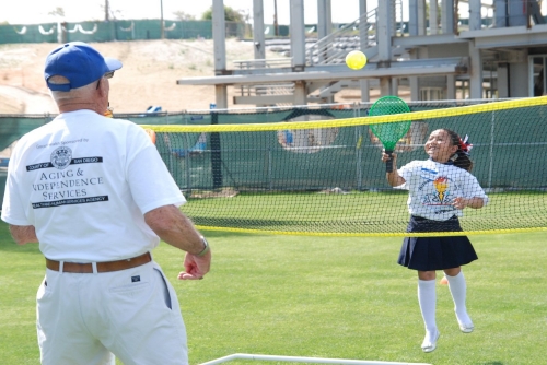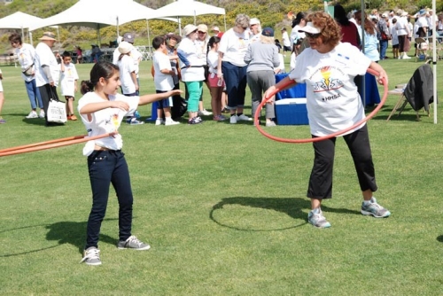 On April 10, 2014, nearly 100 older adult volunteers and 100 third graders from the Chula Vista School District were paired up for the 13th Annual Intergenerational Games at the U.S. Olympic Training Center. They enjoyed a variety of physical and mental challenges together, but the main goal was making friends across the generations. Participants started out feeling shy around each other, but by the end of the day, participants were goofing around and high-fiving each other.