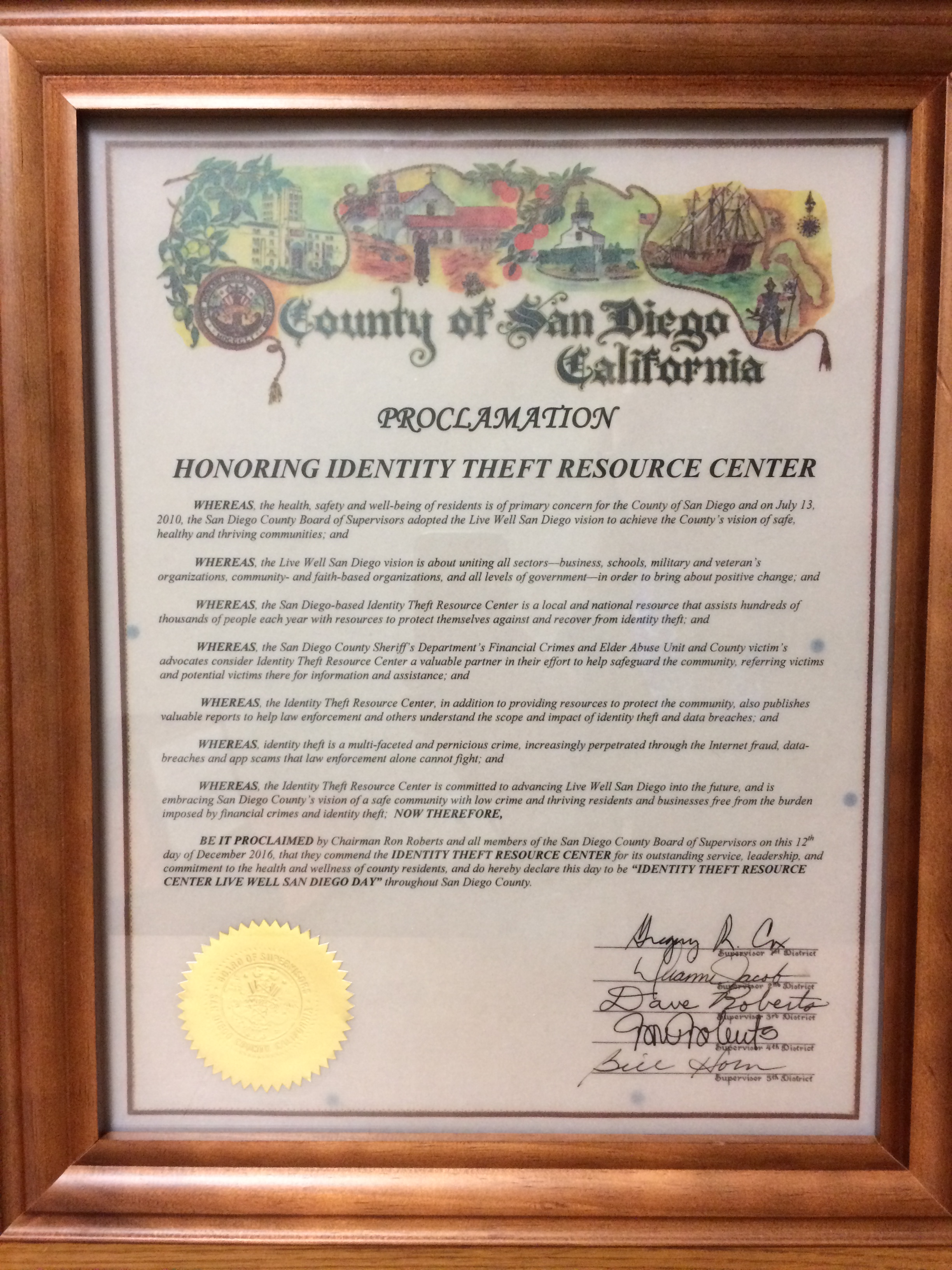 The Identity Theft Resource Center joined Live Well San Diego as a Recognized Partner on December 12, 2016. The Identity Theft Resource Center is a non-profit organization established in 1999 to provide no-cost assistance to victims of identity theft across the United States in resolving their cases and to broaden public education and awareness in the understanding of identity theft, data breaches, cyber security, scams/fraud and privacy issues.